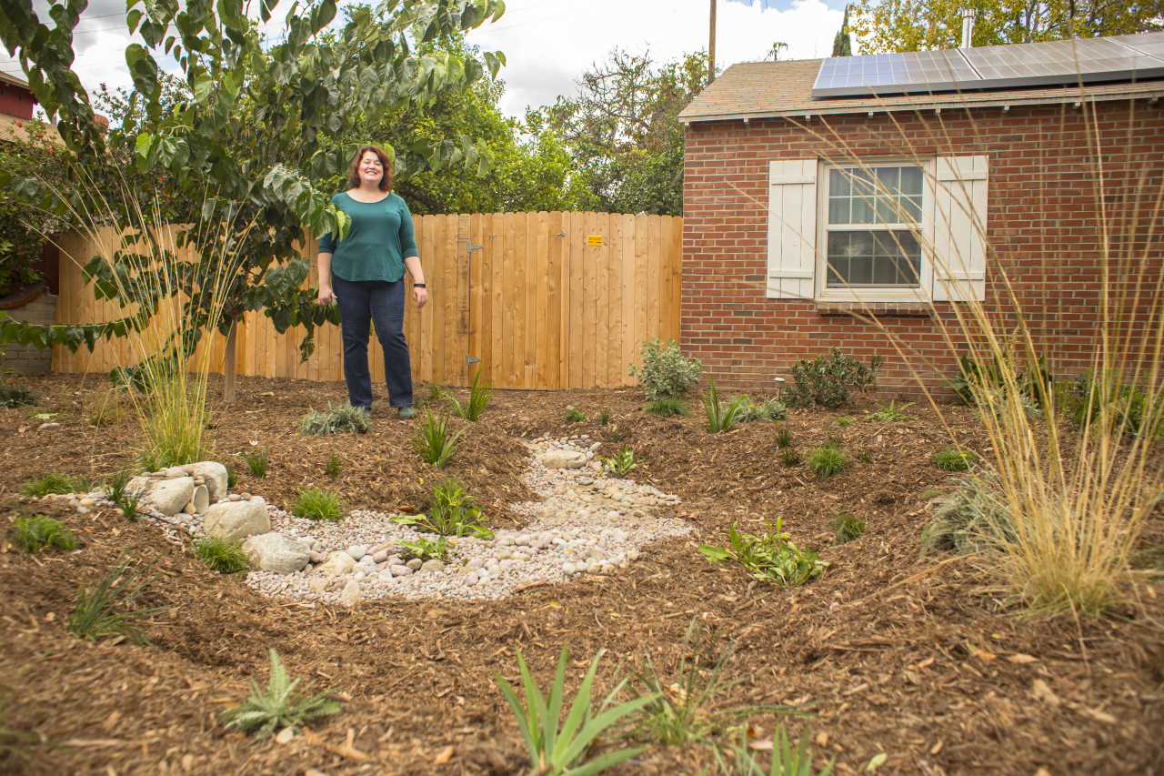 North Hollywood homeowner Carrie Wassenaar shows off her rain garden Photo credit James Kellogg TreePeople